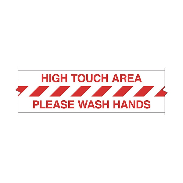 High Touch Area Floor Tape, Continuous Roll, Message, White, 4 in, 100 ft, 8 mil, Polyester, Brady(R), Legend High Touch Area Please Wash Hands, Message Color Red