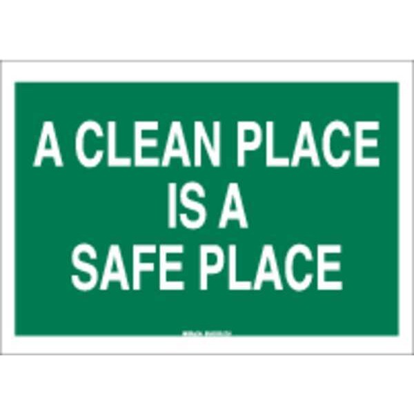 Housekeeping Sign, Sign Subject Matter Cleaning and Maintenance, Height 10 In., Width 14 In., Sign Material Fiberglass, Sign Mounting Style With Mounting Holes, Header No Header, Legend A Clean Place Is A Safe Place, Printed Language English, Sign Shape Rectangle