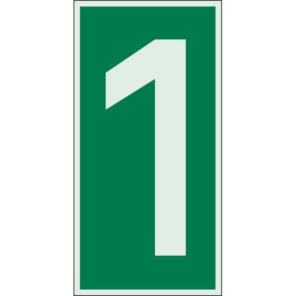 IMO Sign, Number = 1, Green on Glow, 3" W x 6" H, Rectangle, Polyester, 59299