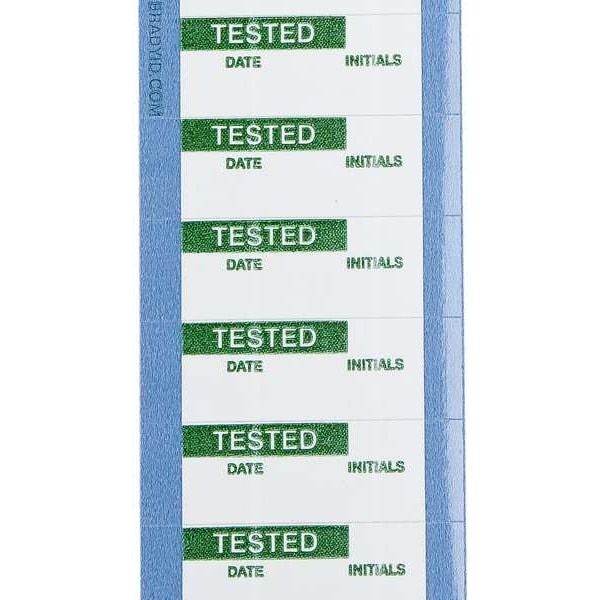 Inspection Label, Adhesive Adhesive, Adhesive Material Rubber, Adhesive Type Removable and Repositionable Adhesive, Label Color Green, White, Label Diameter Not Applicable, Label Height 5/8 in, Label Material Vinyl Cloth, Label Shape Rectangle, Label Width 1 1/2 in, Language English, Number of Labels 350, Preprinted Legend Tested, Product Type Inspection Label, Subject Matter Tested, Indoor/Outdoor Usage Indoor