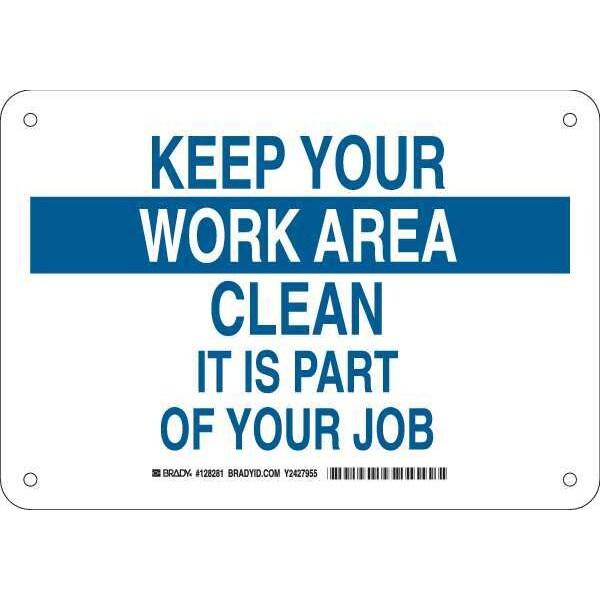 Facility Sign, Sign Subject Matter Cleaning and Maintenance, Height 7 In., Width 10 In., Sign Material Plastic, Sign Mounting Style With Mounting Holes, Header No Header, Legend Keep Your Work Area Clean It Is Part Of Your Job, Printed Language English, Sign Shape Rectangle