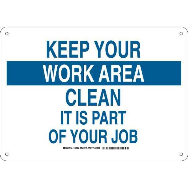 Facility Sign, Sign Subject Matter Cleaning and Maintenance, Height 10 In., Width 14 In., Sign Material Plastic, Sign Mounting Style With Mounting Holes, Header No Header, Legend Keep Your Work Area Clean It Is Part Of Your Job, Printed Language English, Sign Shape Rectangle