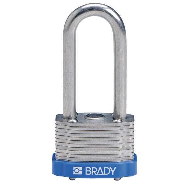 Key Retaining Steel Padlock, Body Color Blue, Body Height 1 1/8 in, Body Material Steel, Body Thickness 1 in, Body Width 1 11/16 in, Header None/No Header, Horizontal Shackle Clearance 13/16 in, Key Style Standard, Key Type Keyed Alike, Non-Removable Key Yes, Resistance Properties Corrosion Resistant, Shackle Diameter 1/4 in, Shackle Height 2 in, Shackle Material Hardened Steel, Shackle Type Extended, Vertical Shackle Clearance 2 in, Width Across Shackle 3/4 in, Body Material Coating Laminated