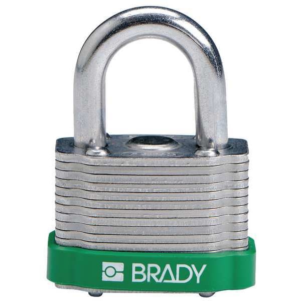 Keyed Padlock, Body Color Green, Body Height 1 1/8 in, Body Material Steel, Body Thickness 1 in, Body Width 1 11/16 in, Header None/No Header, Horizontal Shackle Clearance 13/16 in, Key Style Standard, Key Type Keyed Different, Non-Removable Key Yes, Resistance Properties Corrosion Resistant, Shackle Diameter 1/4 in, Shackle Height 3/4 in, Shackle Material Hardened Steel, Shackle Type Open, Vertical Shackle Clearance 3/4 in, Width Across Shackle 3/4 in, Body Material Coating Laminated