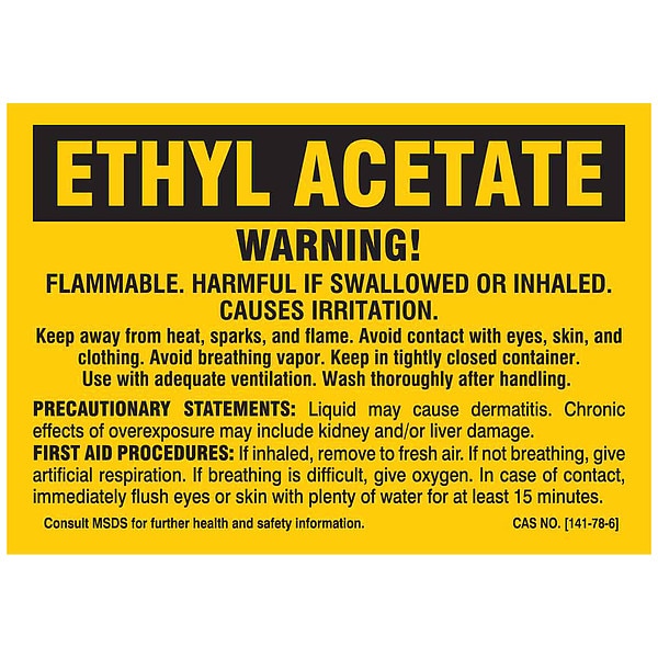 Label, ETHYL ACETATE, Polyester, 5 in W, 3 1/2 in H