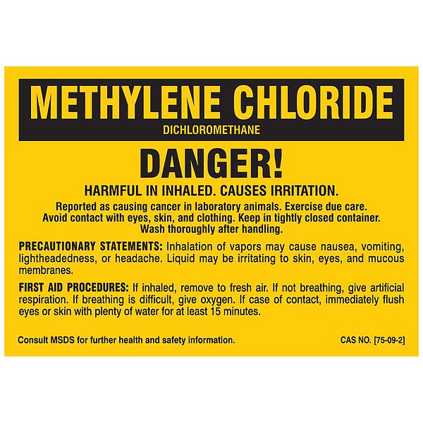 Label, METHYLENE CHLORIDE, Polyester, 5 in W, 3 1/2 in H