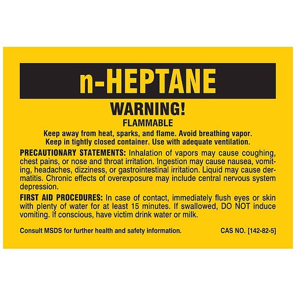 Label, n-HEPTANE, Polyester, 2 7/8 in W, 2 in H