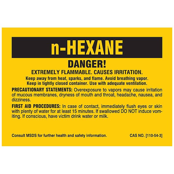 Label, n-HEXANE, Polyester, 2 7/8 in W, 2 in H