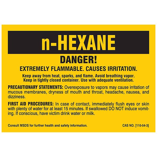 Label, n-HEXANE, Polyester, 5 in W, 3 1/2 in H