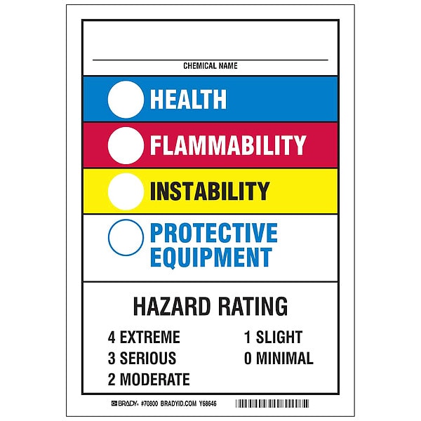 NFPA Label, Adhesive Non-Adhesive, Adhesive Material Not Applicable, Adhesive Properties Magnetic Adhesive, Background Color Black/Blue/Red/White/Yellow, Hazard Communication Standard NFPA, Height 10 in, Kit Contents Not Applicable, Lamination Type Not Laminated, Language English, Material Vinyl, Material Properties Not Applicable, Maximum Service Temperature 158 Degrees F, Minimum Service Temperature 0 Degrees F, Mounting Type Magnetic, Package Type Each, Product Type NFPA Label