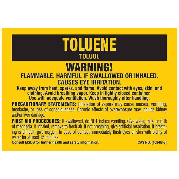 Label, TOLUENE, Polyester, 5 in W, 3 1/2 in H
