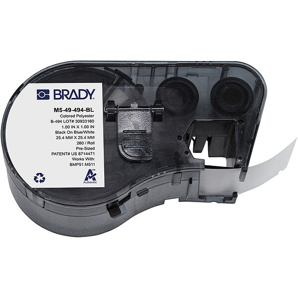 Combined Label and Ribbon Cartridge, Compatible Grainger Part Number 21U174, 21U176, 21U177, 21U178, 21U179, 21U180, 810HX3, 810HX4, Compatible Mfr Part Number BMP51, BMP53, M511, M511-KIT, Label Color Blue, White, Label Finish Gloss, Label Height 1 in, Label Material Polyester, Label Width 1 in, Material Properties Cryogenic, Printer Series Compatibility BMP51, BMP53, M510, M511, Ribbon Color Black, Roll Length Not Applicable, Vial/Tube Size 2.0 to 8.0 mL, For Print Method Thermal-Transfer