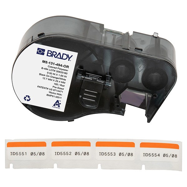 Combined Label and Ribbon Cartridge, Compatible Grainger Part Number 21U174, 21U176, 21U177, 21U178, 21U179, 21U180, 810HX3, 810HX4, Compatible Mfr Part Number BMP51, BMP53, M511, M511-KIT, Label Color Orange, White, Label Finish Gloss, Label Height 1/2 in, Label Material Polyester, Label Width 1 in, Material Properties Cryogenic, Printer Series Compatibility BMP51, BMP53, M510, M511, Ribbon Color Black, Roll Length Not Applicable, Vial/Tube Size 2.0 to 8.0 mL, For Print Method Thermal-Transfer