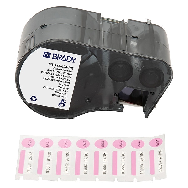 Combined Label and Ribbon Cartridge, Compatible Grainger Part Number 21U174, 21U176, 21U177, 21U178, 21U179, 21U180, 810HX3, 810HX4, Compatible Mfr Part Number BMP51, BMP53, M511, M511-KIT, Label Color Pink, White, Label Finish Gloss, Label Height 3/8 in, Label Material Polyester, Label Width 1 in, Material Properties Cryogenic, Printer Series Compatibility BMP51, BMP53, M510, M511, Ribbon Color Black, Roll Length Not Applicable, Vial/Tube Size 1.0 to 8.0 mL, For Print Method Thermal-Transfer