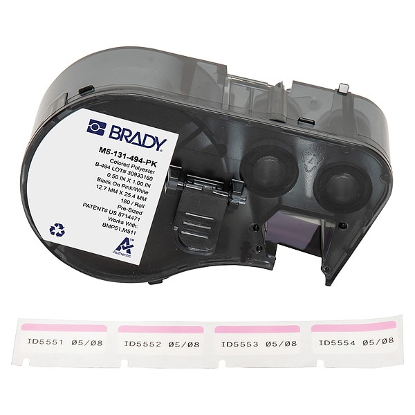 Combined Label and Ribbon Cartridge, Compatible Grainger Part Number 21U174, 21U176, 21U177, 21U178, 21U179, 21U180, 810HX3, 810HX4, Compatible Mfr Part Number BMP51, BMP53, M511, M511-KIT, Label Color Pink, White, Label Finish Gloss, Label Height 1/2 in, Label Material Polyester, Label Width 1 in, Material Properties Cryogenic, Printer Series Compatibility BMP51, BMP53, M510, M511, Ribbon Color Black, Roll Length Not Applicable, Vial/Tube Size 2.0 to 8.0 mL, For Print Method Thermal-Transfer