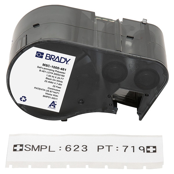 Combined Label and Ribbon Cartridge, Compatible Grainger Part Number 21U174, 21U176, 21U177, 21U178, 21U179, 21U180, 810HX3, 810HX4, Compatible Mfr Part Number BMP51, BMP53, M511, Label Color White, Label Finish Matte, Label Height Not Applicable, Label Material Polyester, Label Width 1 in, Material Properties Autoclavable, Cryogenic, Laminated, Printer Series Compatibility BMP51, BMP53, M510, M511, Ribbon Color Black, Roll Length 25 ft, Vial/Tube Size 2.0 to 50.0 mL