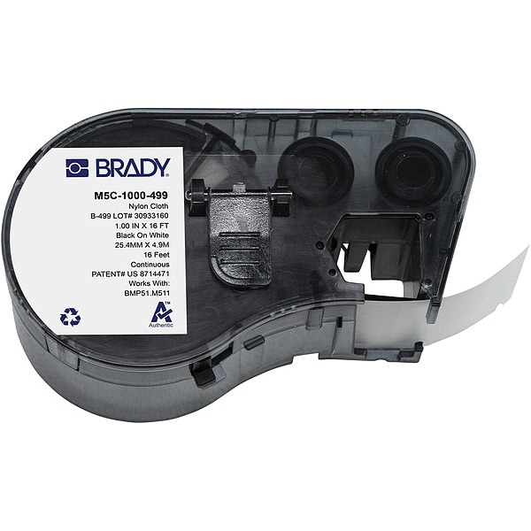 Combined Label and Ribbon Cartridge, Compatible Grainger Part Number 21U174, 21U176, 21U177, 21U178, 21U179, 21U180, 810HX3, 810HX4, Compatible Mfr Part Number BMP51, BMP53, M511, Label Color White, Label Finish Matte, Label Height Not Applicable, Label Material Nylon, Label Width 1 in, Material Properties Autoclavable, Cryogenic, Halogen-Free, Printer Series Compatibility BMP51, BMP53, M510, M511, Ribbon Color Black, Roll Length 16 ft, Vial/Tube Size 2.0 to 50.0 mL