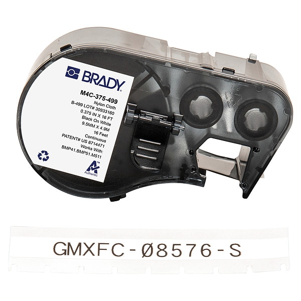 Combined Label and Ribbon Cartridge, Compatible Grainger Part Number 20XX01, 20XX02, 20XX04, 21U174, 21U176, 21U177, 21U178, 21U179, 21U180, 29YJ26, 810HX3, 810HX4, Compatible Mfr Part Number BMP41, BMP51, BMP53, M511, Label Color White, Label Finish Matte, Label Height Not Applicable, Label Material Nylon, Label Width 3/8 in, Material Properties Autoclavable, Cryogenic, Halogen-Free, Printer Series Compatibility BMP41, BMP51, BMP53, M410, M510, M511, Ribbon Color Black, Roll Length 16 ft