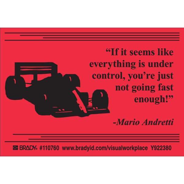 Label, Horizontal Rectangle, Number of Printed Sides 1, English, Sign Legend If It Seems Like Everything Is Under Control, You'Re Just Not Going Fast Enough! -Mario Andretti, Sign Legend Style Symbol and Text, Package Quantity 10