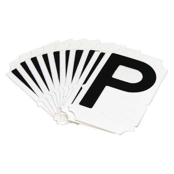 Letter Label, Adhesive Type Permanent Adhesive, Application General Identification, APWA Compliant Color No, Background Color White, Character Color Black, Character Color Gradient Solid Color, Character Height 2 in, Character Outline Color Not Applicable, Character Type Letters, Characters Included P, Die Cut Yes, Embossed No, Font Gothic, Includes (10) Cards, Indoor/Outdoor Usage Indoor/Outdoor, Letter Casing Uppercase, Material Polyester, Meets USCG Registration Guidelines No