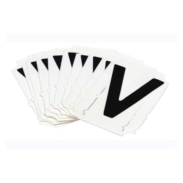 Letter Label, Adhesive Type Permanent Adhesive, Application General Identification, APWA Compliant Color No, Background Color White, Character Color Black, Character Color Gradient Solid Color, Character Height 2 in, Character Outline Color Not Applicable, Character Type Letters, Characters Included V, Die Cut Yes, Embossed No, Font Gothic, Includes (10) Cards, Indoor/Outdoor Usage Indoor/Outdoor, Letter Casing Uppercase, Material Polyester, Meets USCG Registration Guidelines No