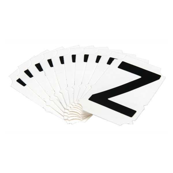 Letter Label, Adhesive Type Permanent Adhesive, Application General Identification, APWA Compliant Color No, Background Color White, Character Color Black, Character Color Gradient Solid Color, Character Height 2 in, Character Outline Color Not Applicable, Character Type Letters, Characters Included Z, Die Cut Yes, Embossed No, Font Gothic, Includes (10) Cards, Indoor/Outdoor Usage Indoor/Outdoor, Letter Casing Uppercase, Material Polyester, Meets USCG Registration Guidelines No
