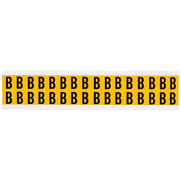 Letter Label, Adhesive Type Permanent Adhesive, Application General Identification, Pipe and Valve Marking, APWA Compliant Color No, Background Color Yellow, Character Color Black, Character Color Gradient Solid Color, Character Height 5/8 in, Character Outline Color Not Applicable, Character Type Letters, Characters Included B, Die Cut Yes, Embossed No, Font Gothic, Includes (32) Labels, Indoor/Outdoor Usage Indoor/Outdoor, Letter Casing Uppercase, Material Vinyl