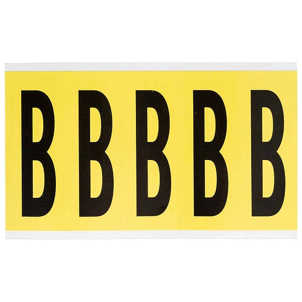 Letter Label, Adhesive Type Removable and Repositionable Adhesive, Application General Identification, Wire and Cable Labeling, APWA Compliant Color No, Background Color Yellow, Character Color Black, Character Color Gradient Solid Color, Character Height 4 in, Character Outline Color Not Applicable, Character Type Letters, Characters Included B, Die Cut Yes, Embossed No, Font Gothic, Includes (5) Labels, Indoor/Outdoor Usage Indoor Only, Letter Casing Uppercase, Material Vinyl Cloth