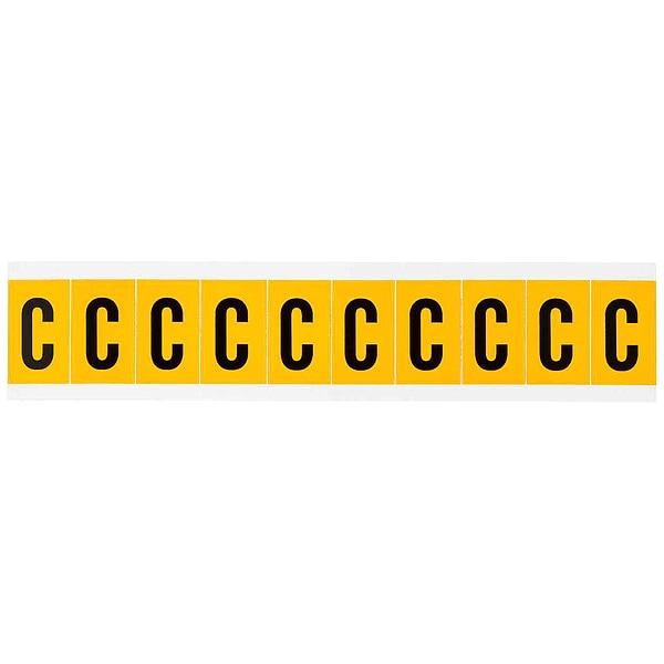 Letter Label, Adhesive Type Permanent Adhesive, Application General Identification, Pipe and Valve Marking, APWA Compliant Color No, Background Color Yellow, Character Color Black, Character Color Gradient Solid Color, Character Height 1 in, Character Outline Color Not Applicable, Character Type Letters, Characters Included C, Die Cut Yes, Embossed No, Font Gothic, Includes (10) Labels, Indoor/Outdoor Usage Indoor/Outdoor, Letter Casing Uppercase, Material Vinyl