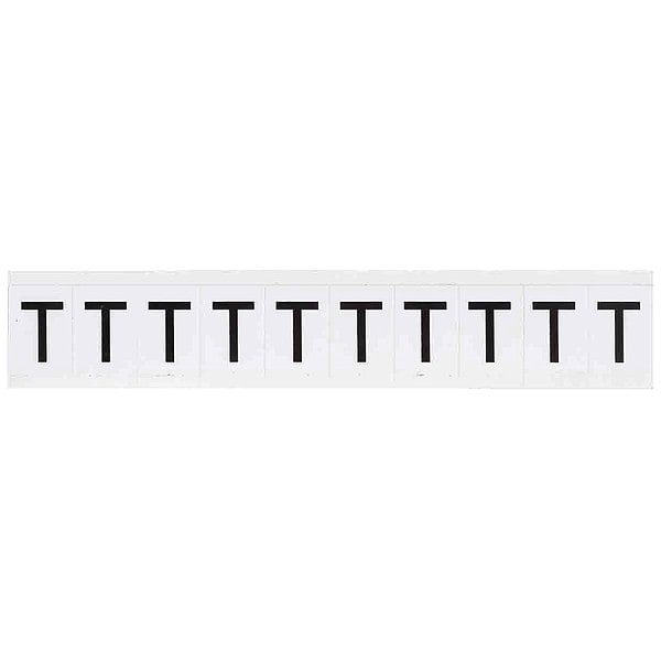 Letter Label, Adhesive Type Permanent Adhesive, Application General Identification, Pipe and Valve Marking, APWA Compliant Color No, Background Color White, Character Color Black, Character Color Gradient Solid Color, Character Height 1 in, Character Outline Color Not Applicable, Character Type Letters, Characters Included T, Die Cut Yes, Embossed No, Font Helvetica, Includes (10) Labels, Indoor/Outdoor Usage Indoor/Outdoor, Letter Casing Uppercase, Material Vinyl