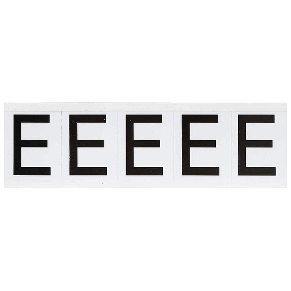 Letter Label, Adhesive Type Permanent Adhesive, Application General Identification, Pipe and Valve Marking, APWA Compliant Color No, Background Color White, Character Color Black, Character Color Gradient Solid Color, Character Height 1 15/16 in, Character Outline Color Not Applicable, Character Type Letters, Characters Included E, Die Cut Yes, Embossed No, Font Helvetica, Includes (5) Labels, Indoor/Outdoor Usage Indoor/Outdoor, Letter Casing Uppercase, Material Vinyl