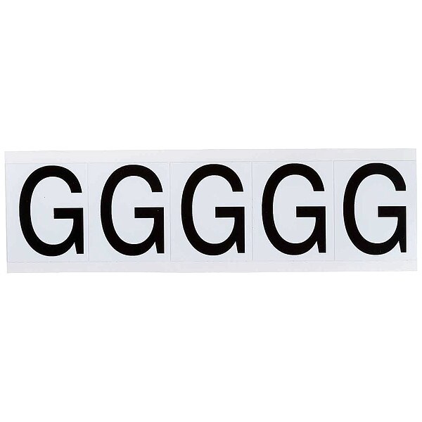 Letter Label, Adhesive Type Permanent Adhesive, Application General Identification, Pipe and Valve Marking, APWA Compliant Color No, Background Color White, Character Color Black, Character Color Gradient Solid Color, Character Height 1 15/16 in, Character Outline Color Not Applicable, Character Type Letters, Characters Included G, Die Cut Yes, Embossed No, Font Helvetica, Includes (5) Labels, Indoor/Outdoor Usage Indoor/Outdoor, Letter Casing Uppercase, Material Vinyl