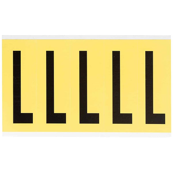 Letter Label, Adhesive Type Removable and Repositionable Adhesive, Application General Identification, Wire and Cable Labeling, APWA Compliant Color No, Background Color Yellow, Character Color Black, Character Color Gradient Solid Color, Character Height 4 in, Character Outline Color Not Applicable, Character Type Letters, Characters Included L, Die Cut Yes, Embossed No, Font Gothic, Includes (5) Labels, Indoor/Outdoor Usage Indoor Only, Letter Casing Uppercase, Material Vinyl Cloth