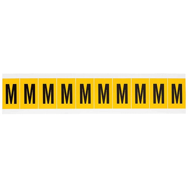 Letter Label, Adhesive Type Permanent Adhesive, Application General Identification, Pipe and Valve Marking, APWA Compliant Color No, Background Color Yellow, Character Color Black, Character Color Gradient Solid Color, Character Height 1 in, Character Outline Color Not Applicable, Character Type Letters, Characters Included M, Die Cut Yes, Embossed No, Font Gothic, Includes (10) Labels, Indoor/Outdoor Usage Indoor/Outdoor, Letter Casing Uppercase, Material Vinyl