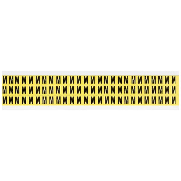 Letter Label, Adhesive Type Removable and Repositionable Adhesive, Application General Identification, Wire and Cable Labeling, APWA Compliant Color No, Background Color Yellow, Character Color Black, Character Color Gradient Solid Color, Character Height 3/8 in, Character Outline Color Not Applicable, Character Type Letters, Characters Included M, Die Cut Yes, Embossed No, Font Gothic, Includes (78) Labels, Indoor/Outdoor Usage Indoor Only, Letter Casing Uppercase, Material Vinyl Cloth