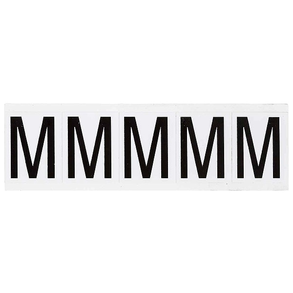 Letter Label, Adhesive Type Permanent Adhesive, Application General Identification, Pipe and Valve Marking, APWA Compliant Color No, Background Color White, Character Color Black, Character Color Gradient Solid Color, Character Height 2 in, Character Outline Color Not Applicable, Character Type Letters, Characters Included M, Die Cut Yes, Embossed No, Font Helvetica, Includes (5) Labels, Indoor/Outdoor Usage Indoor/Outdoor, Letter Casing Uppercase, Material Vinyl