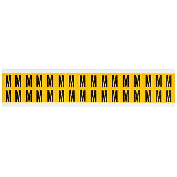 Letter Label, Adhesive Type Permanent Adhesive, Application General Identification, Pipe and Valve Marking, APWA Compliant Color No, Background Color Yellow, Character Color Black, Character Color Gradient Solid Color, Character Height 5/8 in, Character Outline Color Not Applicable, Character Type Letters, Characters Included M, Die Cut Yes, Embossed No, Font Gothic, Includes (32) Labels, Indoor/Outdoor Usage Indoor/Outdoor, Letter Casing Uppercase, Material Vinyl