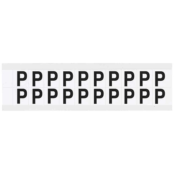 Letter Label, Adhesive Type Permanent Adhesive, Application General Identification, Pipe and Valve Marking, APWA Compliant Color No, Background Color White, Character Color Black, Character Color Gradient Solid Color, Character Height 5/8 in, Character Outline Color Not Applicable, Character Type Letters, Characters Included P, Die Cut Yes, Embossed No, Font Helvetica, Includes (20) Labels, Indoor/Outdoor Usage Indoor/Outdoor, Letter Casing Uppercase, Material Vinyl