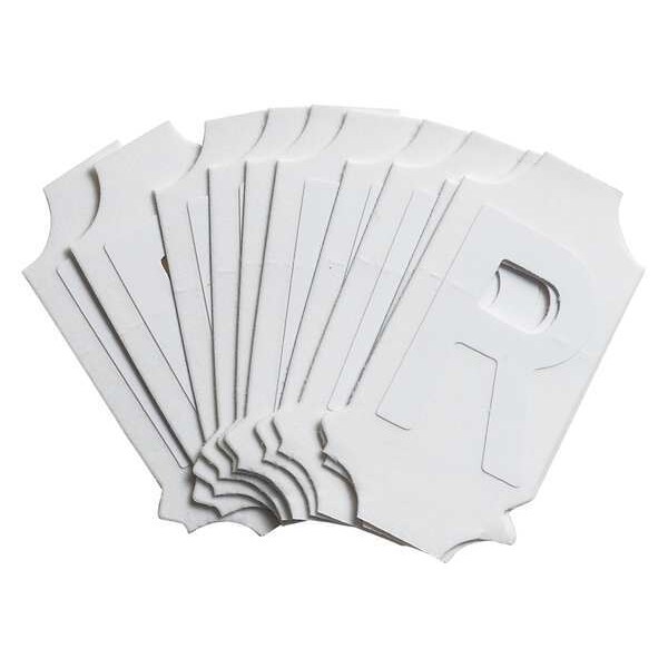 Letter Label, Background Color White, Character Color White, Character Height 1 in, Character Type Letters/Numbers, Characters Included R, Die Cut Yes, Font Gothic, Includes 10 Labels/Card, Indoor/Outdoor Usage Indoor/Outdoor, Material Polyester, Mounting Type Adhesive, Number of Pieces 10, Overall Height 1 3/4 in, Overall Width 7/8 in, Retroreflective Grade Non-Reflective, Self-Spacing/Aligning Yes, Standards ASTM D 2979, Package Quantity 10