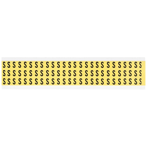 Letter Label, Adhesive Type Removable and Repositionable Adhesive, Application General Identification, Wire and Cable Labeling, APWA Compliant Color No, Background Color Yellow, Character Color Black, Character Color Gradient Solid Color, Character Height 3/8 in, Character Outline Color Not Applicable, Character Type Letters, Characters Included S, Die Cut Yes, Embossed No, Font Gothic, Includes (78) Labels, Indoor/Outdoor Usage Indoor Only, Letter Casing Uppercase, Material Vinyl Cloth