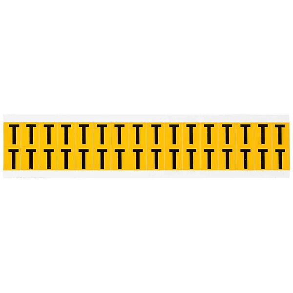 Letter Label, Adhesive Type Permanent Adhesive, Application General Identification, Pipe and Valve Marking, APWA Compliant Color No, Background Color Yellow, Character Color Black, Character Color Gradient Solid Color, Character Height 5/8 in, Character Outline Color Not Applicable, Character Type Letters, Characters Included T, Die Cut Yes, Embossed No, Font Gothic, Includes (32) Labels, Indoor/Outdoor Usage Indoor/Outdoor, Letter Casing Uppercase, Material Vinyl