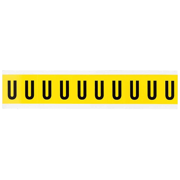 Letter Label, Adhesive Type Removable and Repositionable Adhesive, Application General Identification, Wire and Cable Labeling, APWA Compliant Color No, Background Color Yellow, Character Color Black, Character Color Gradient Solid Color, Character Height 1 in, Character Outline Color Not Applicable, Character Type Letters, Characters Included U, Die Cut Yes, Embossed No, Font Gothic, Includes (10) Labels, Indoor/Outdoor Usage Indoor Only, Letter Casing Uppercase, Material Vinyl Cloth