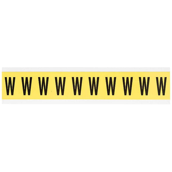 Letter Label, Adhesive Type Removable and Repositionable Adhesive, Application General Identification, Wire and Cable Labeling, APWA Compliant Color No, Background Color Yellow, Character Color Black, Character Color Gradient Solid Color, Character Height 1 in, Character Outline Color Not Applicable, Character Type Letters, Characters Included W, Die Cut Yes, Embossed No, Font Gothic, Includes (10) Labels, Indoor/Outdoor Usage Indoor Only, Letter Casing Uppercase, Material Vinyl Cloth