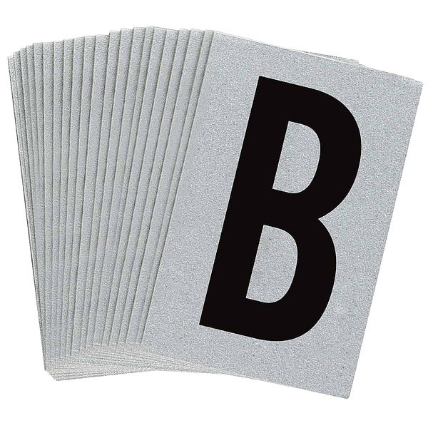 Letter Label, Adhesive Type Permanent Adhesive, Application Utility Plant Markings, APWA Compliant Color No, Background Color Silver, Character Color Black, Character Color Gradient Solid Color, Character Height 1 in, Character Outline Color Not Applicable, Character Type Letters, Characters Included B, Die Cut Yes, Embossed No, Font Archivo Narrow, Includes (25) Labels, Indoor/Outdoor Usage Indoor/Outdoor, Letter Casing Uppercase, Material Retroreflective Sheeting
