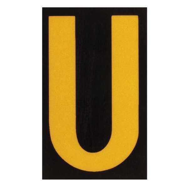 Letter Label, Adhesive Type Permanent Adhesive, Application Utility Plant Markings, APWA Compliant Color No, Background Color Black, Character Color Yellow, Character Color Gradient Solid Color, Character Height 1 in, Character Outline Color Not Applicable, Character Type Letters, Characters Included U, Die Cut Yes, Embossed No, Font Archivo Narrow, Includes (25) Labels, Indoor/Outdoor Usage Indoor/Outdoor, Letter Casing Uppercase, Material Retroreflective Sheeting
