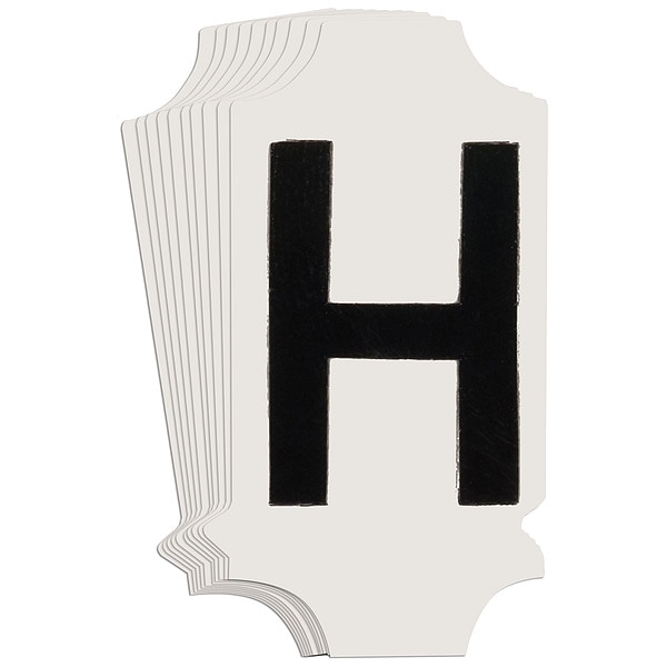 Letter Label, Adhesive Type Permanent Adhesive, Application General Identification, APWA Compliant Color No, Background Color Not Applicable, Character Color Black, Character Color Gradient Solid Color, Character Height 1 in, Character Outline Color Not Applicable, Character Type Letters, Characters Included H, Die Cut Yes, Embossed No, Font Gothic, Includes (10) Labels, Indoor/Outdoor Usage Indoor/Outdoor, Letter Casing Uppercase, Material Polyester, Meets USCG Registration Guidelines No
