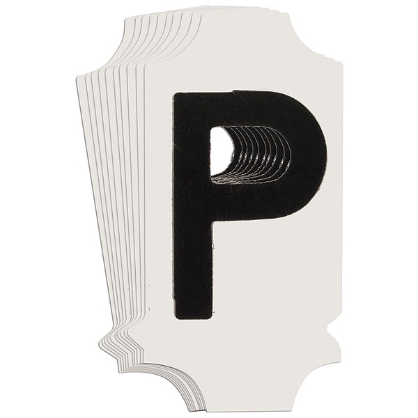 Letter Label, Adhesive Type Permanent Adhesive, Application General Identification, APWA Compliant Color No, Background Color Not Applicable, Character Color Black, Character Color Gradient Solid Color, Character Height 1 in, Character Outline Color Not Applicable, Character Type Letters, Characters Included P, Die Cut Yes, Embossed No, Font Gothic, Includes (10) Labels, Indoor/Outdoor Usage Indoor/Outdoor, Letter Casing Uppercase, Material Polyester, Meets USCG Registration Guidelines No