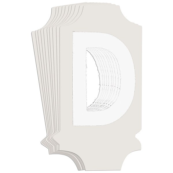 Letter Label, Adhesive Type Permanent Adhesive, Application General Identification, APWA Compliant Color No, Background Color Not Applicable, Character Color White, Character Color Gradient Solid Color, Character Height 1 in, Character Outline Color Not Applicable, Character Type Letters, Characters Included D, Die Cut Yes, Embossed No, Font Gothic, Includes (10) Labels, Indoor/Outdoor Usage Indoor/Outdoor, Letter Casing Uppercase, Material Polyester, Meets USCG Registration Guidelines No