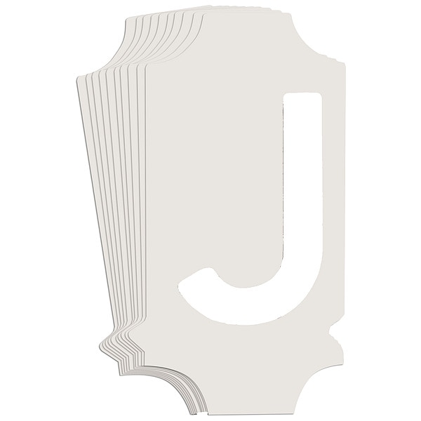 Letter Label, Adhesive Type Permanent Adhesive, Application General Identification, APWA Compliant Color No, Background Color Not Applicable, Character Color White, Character Color Gradient Solid Color, Character Height 1 in, Character Outline Color Not Applicable, Character Type Letters, Characters Included J, Die Cut Yes, Embossed No, Font Gothic, Includes (10) Labels, Indoor/Outdoor Usage Indoor/Outdoor, Letter Casing Uppercase, Material Polyester, Meets USCG Registration Guidelines No