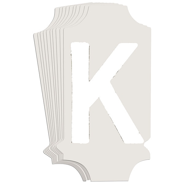 Letter Label, Adhesive Type Permanent Adhesive, Application General Identification, APWA Compliant Color No, Background Color Not Applicable, Character Color White, Character Color Gradient Solid Color, Character Height 1 in, Character Outline Color Not Applicable, Character Type Letters, Characters Included K, Die Cut Yes, Embossed No, Font Gothic, Includes (10) Labels, Indoor/Outdoor Usage Indoor/Outdoor, Letter Casing Uppercase, Material Polyester, Meets USCG Registration Guidelines No